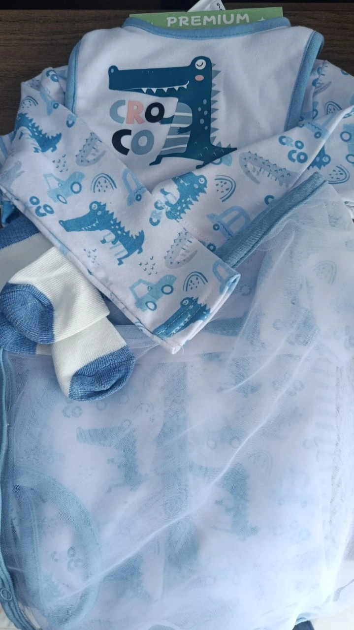 8 Pcs set romper ,onesie,topi mitten socks swaddle bib storage Bag included perfect for gift set