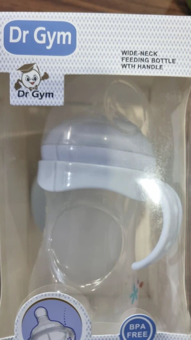 Dr. Gym Baby Feeding Glass Bottle (120ml) is made from durable, high-quality glass, featuring an anti-colic nipple for a smooth, safe, and comfortable feeding experience.