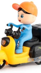 360 DEGREE ROTATING STUNT TRICYCLE: Food Dilvery toy has cool lights and interesting music. When the switch is turned on, the little Bike will do stunts, accompanied by music and lights, which is very interesting.
