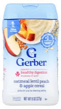 Whole grain oat flour, red lentil flour, peach flakes, apple flakes, potassium phosphate, sunflower lecithin, granola lecithin, b. lactis cultures, vitamins and minerals: vitamin C (ascorbic acid), iron (electrolytic), vitamin E (alpha tocopheryl acetate), zinc sulfate, niacinamide, vitamin B2 (riboflavin), vitamin B1 (thiamine mononitrate), vitamin B6 (pyridoxine hydrochloride), folic acid, vitamin B12.