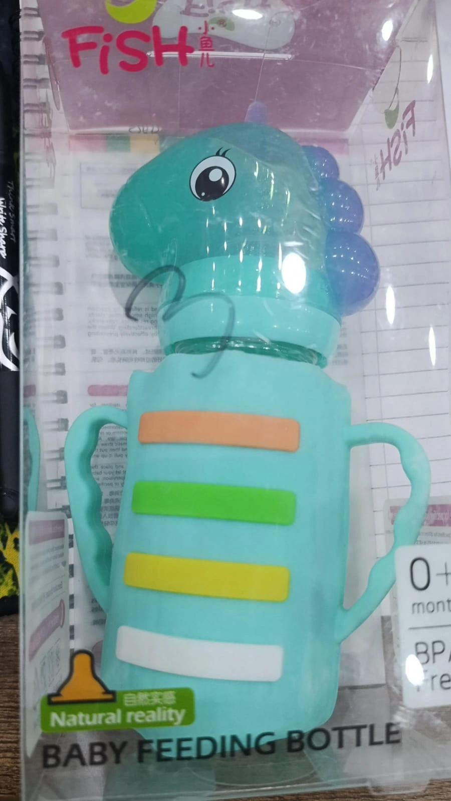 a safe sterilized container GLASS used to feed formula or expressed breast milk consisting of a bottle body ,a silicone or latex treat nipple a ring and a cap baby feeding bottle