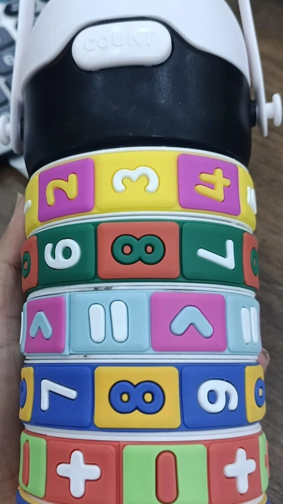 This is a children's novelty water bottle designed with an interactive, toy-like exterior. It features a unique "math puzzle" or "arithmetic" theme that combines hydration with educational play