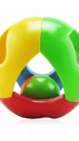 The toy appears to have a variety of functions, including rolling, wobbling, rattling, and jingling.
