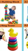 5 Ring Tower: A classic stacking toy that enhances hand-eye coordination and helps toddlers learn about colors and sizes.