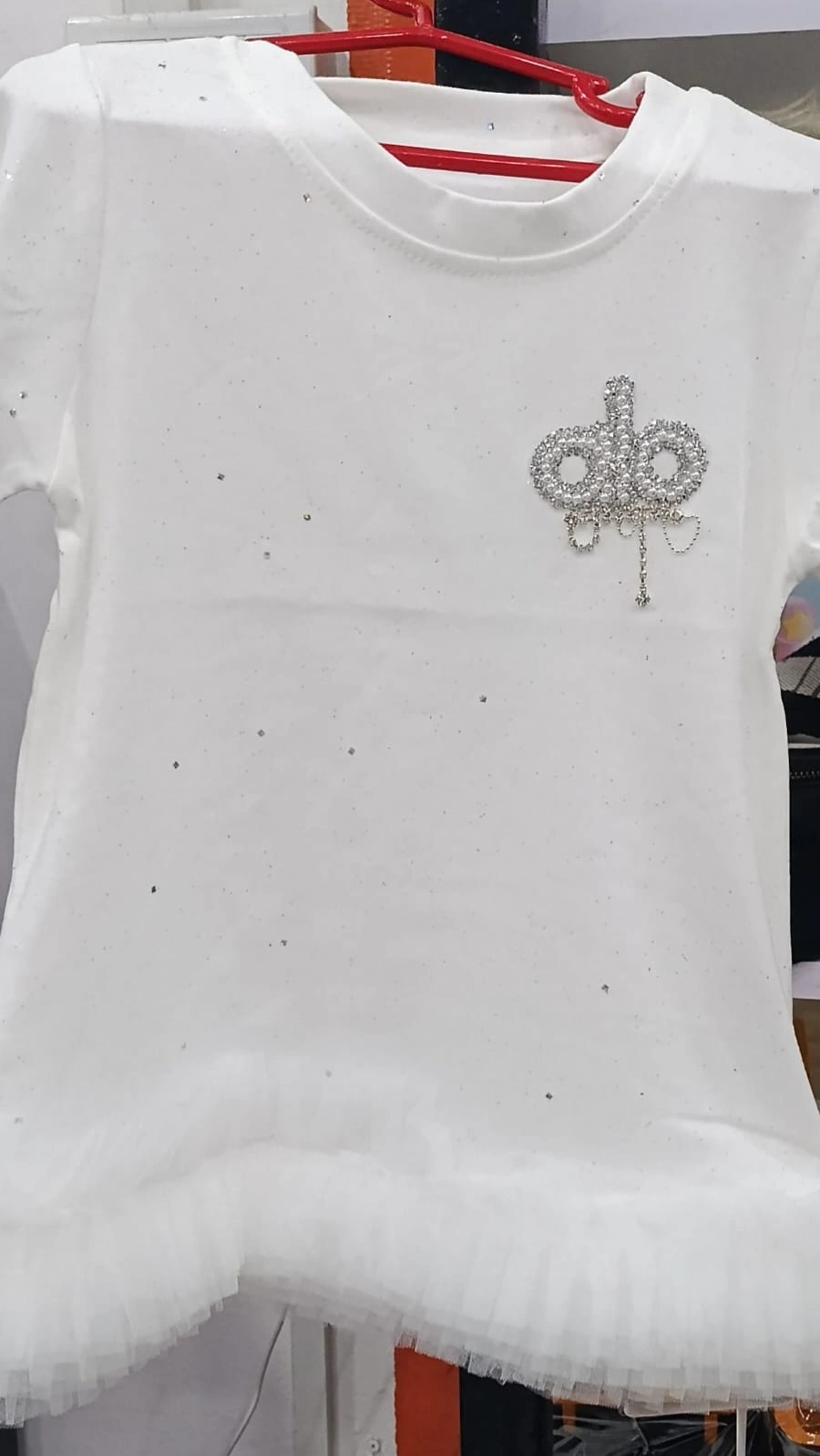 An elegant baby frock is characterized by soft, high-quality materials like cotton or satin, designed for both comfort and luxury. Typical features include delicate ruffled tiers, intricate lace trims, half sleeves,