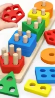 1 X Wooden Montessori Educational Colorful Geometric 10 Shapes Sets Sorting Board Stack Building Puzzle Toy For Kids